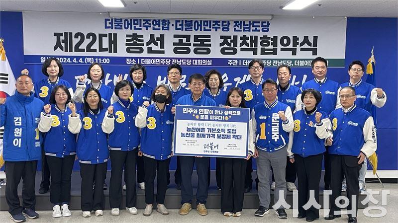 더불어민주당 전남도당은 더불어민주연합과 22대 총선 공동 정책협약식을 진행했다.