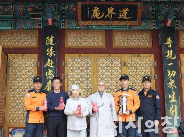 봄철 화재예방 안전대책의 일환으로 실시한 이번 활동은, 관내 전통 사찰과 암자를 방문하여 K급 소화기 1개와 투척용 소화용구 4개를 전달했다.