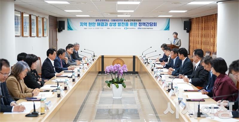 [시사의창 = 송상교 기자] 더불어민주당 호남발전특별위원회(수석부위원장 이병훈 국회의원)가 광주 지역 경제계와 머리를 맞대고 지역경제 활성화 방안을 논의했다. 더불어민주당 호남발전특별위원회는 10월 20일 오전 11시, 광주상공회의소에서 광주상공회의소와 공동으로 지역 주요 현안 간담회를 열고 지역 현안 9대 과제를 집