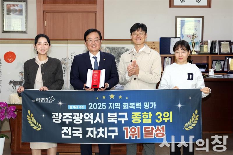 [시사의창=송상교기자] 광주광역시 북구가 ‘2025 한겨레 지역 회복력 평가’에서 전국 자치구 중 최우수 지자체(전국 1위)로 선정되는 영예를 안았다. 광주광역시 북구(구청장 문인)는 이번 평가에서 전국 226개 기초지자체 중 총점 67.7점(100점 만점)을 획득해 ‘전국 10대 우수 지자체’ 3위, 그리고 전국 자