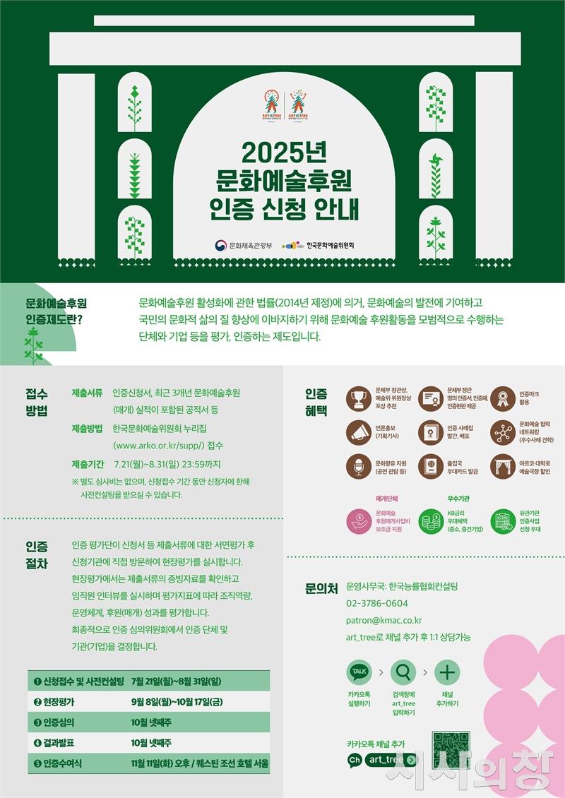 [시사의창=송상교기자] 광주문화재단이 문화체육관광부와 한국문화예술위원회가 공동으로 추진한 ‘2025년도 문화예술후원매개단체 신규 인증’ 심사에서 신규 인증기관으로 선정됐다. 이번 인증을 통해 광주문화재단은 공공 후원매개기관으로서의 전문성과 신뢰성을 공식 인정받았다. 문화예술후원 인증 제도는 문화예