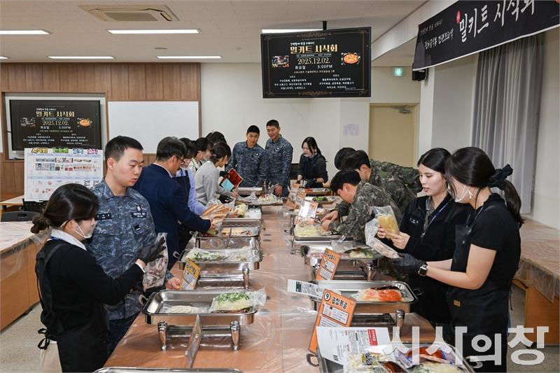 [시사의창=송상교기자] 해군군수사령부(사령관 소장 안상민) 보급창이 군 급식의 질 향상과 조리 인력의 부담 완화를 위해 단체급식용 밀키트 도입을 본격 추진하며 급식 혁신에 시동을 걸었다. 해군군수사령부 보급창은 2일 교육사 기술행정학교에서 밀키트 홍보 행사를 열고 조달청 나라장터 등록 제품을 함정 및 육상부대 급양 관