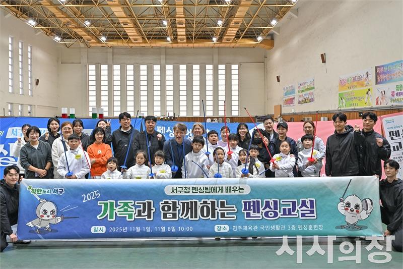 [시사의창=송상교기자] 광주광역시 서구(구청장 김이강)가 지역 주민과 가족이 함께 즐길 수 있는 생활체육 프로그램 ‘가족과 함께하는 펜싱교실 3기’를 개강하며 큰 호응을 얻고 있다. 1일 염주체육관 올림픽국민생활기념관 펜싱훈련장에서 열린 이번 개강식에는 김이강 광주 서구청장이 참석해 참가자들을 격려하고 기념촬영을 함께