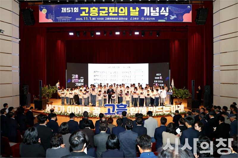 [시사의창=송상교기자] 고흥군(군수 공영민)이 11월 1일 고흥문화회관 김연수실에서 제51회 고흥군민의 날 기념식을 성황리에 개최했다. 이번 행사에는 군민과 출향향우 등 600여 명이 함께해 세대를 아우르는 화합의 장을 만들었다. 올해 기념식은 ‘세대가 이어온 꿈, 함께 만드