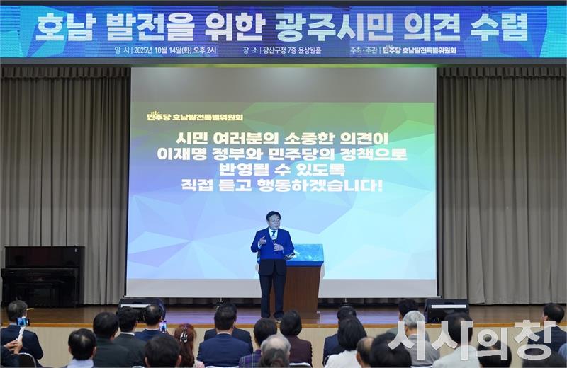 [시사의창=송상교기자] 더불어민주당 호남발전특별위원회(수석부위원장 이병훈 국회의원)가 14일 오후 2시 광산구청 7층 윤상원홀에서 ‘호남발전을 위한 광주시민 의견 수렴 행사’를 개최하고, 시민이 직접 참여하는 현장 중심의 정책 논의의 장을 열었다.