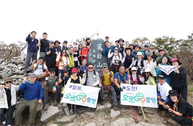 [시사의창=이태헌 기자] 함양군이 10월 17일 산악인 엄홍길 홍보대사와 함께 ‘오르GO 함양’ 동반 산행을 기백산에서 진행했다. 이번 행사는 사전 신청자 중 ‘오르GO 함양’ 신규 참여자 우선 선발 원칙을 적용해 50여 명이 완등 인증과 체험에 참여했다.참가자들은 오전 10시, 안의면 용추사 일주문 주차장에서 준비운동
