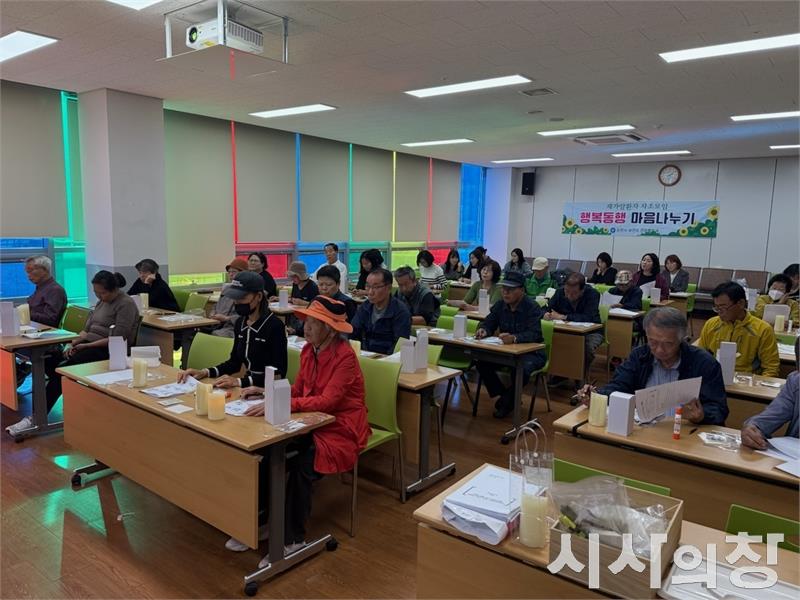 [시사의창 = 신민철 기자] 순천시 보건소는 "지난 24일, 제4차 재가암환자 자조모임 「가족사랑 나눔터」의 일환으로 삼산도서관에서 진행된 ‘캘리그라피 LED 캔들 만들기’ 프로그램을 성공적으로 마무리했다"고 27일 밝혔다. 이번 자조모임은 재가암 환자와 가족 60여 명이 참여해 감정을 표현하고 서로의 이야기를 나누며