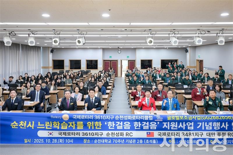 [시사의창=신민철기자] 순천시(시장 노관규)는 지난 28일 순천대학교 초석홀에서 순천시지역아동센터연합회 및 순천성화로타리클럽과 함께 ‘느린학습자 지원사업’ 발대식을 열고 본격적인 사업 추진에 나섰다. 이번 사업은 순천성화로타리클럽의 후원금 5,040만 원으로 운영되며, 경계선 지능 아동을 대상으로 한 맞춤형 성장 지원