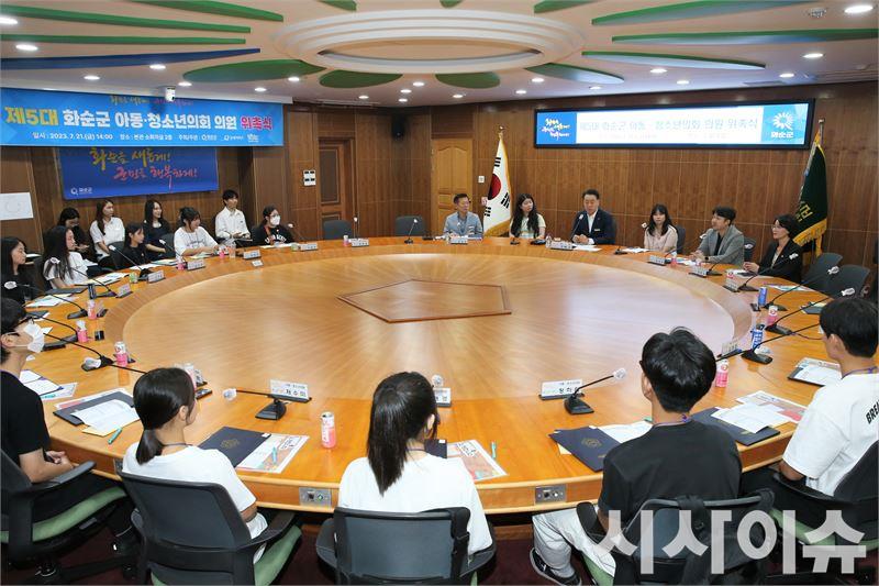 화순군과 굿네이버스 전남 북부지부는 공공기관과 민간기관의 협력으로 주관하는 제5대 화순군 아동청소년의회 의원 위촉식을 21일 화순군청 소회의실에서 개최하였다.