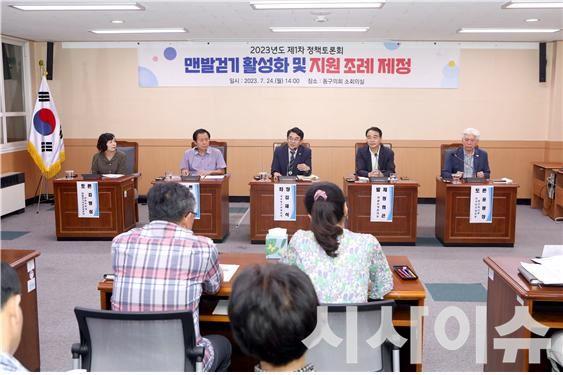 토론회는 김재식 의장을 좌장으로 구의원, 동구청, 맨발걷기국민운동본부 관계자 등 30여명이 참석했다.