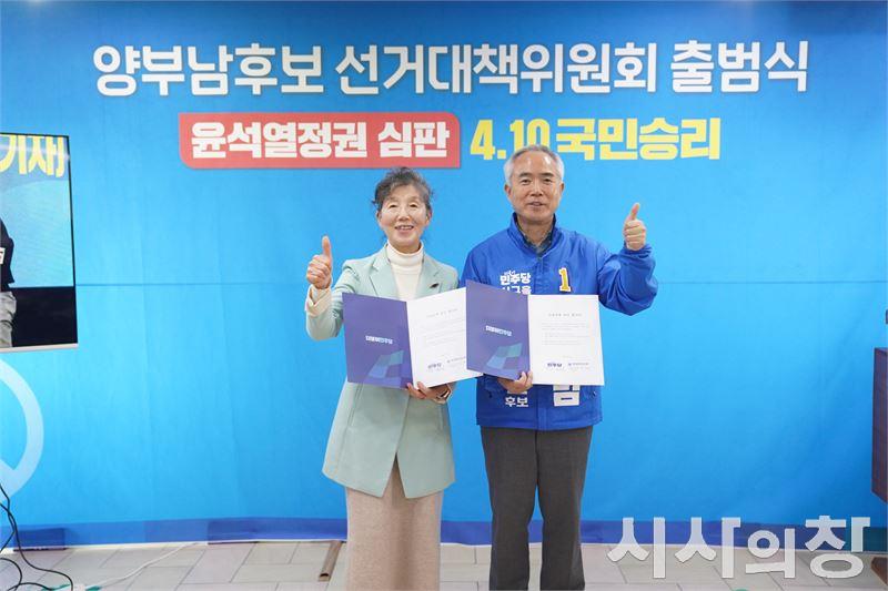 양부남 더불어민주당 광주 서구을 후보가 5일 선거사무소에서 대한간호협회 광주광역시간호사회와 정책협약을 체결하며 간호 사각지대 해소를 위해 힘쓰고 있다.