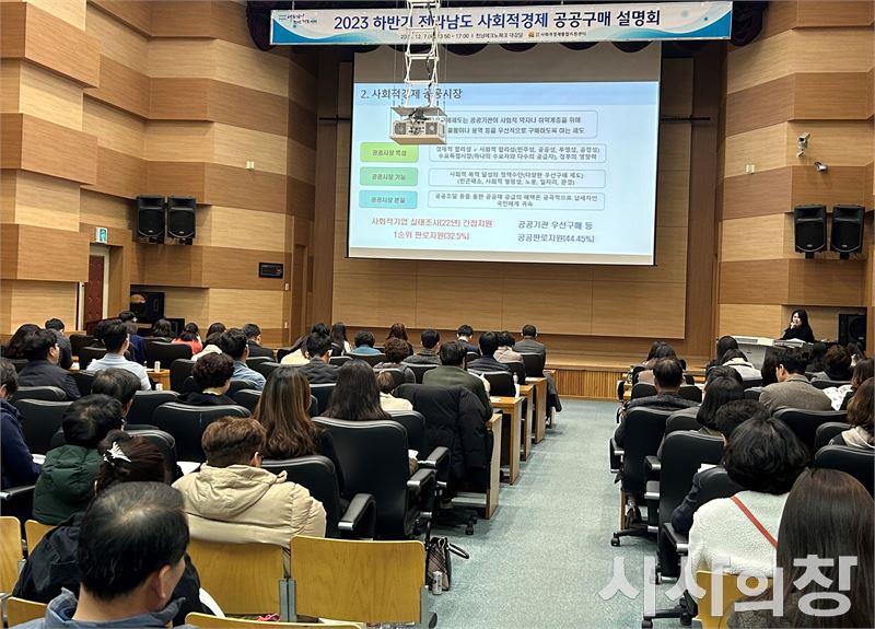 전라남도는 지난 2021년부터 도 조례를 개정해 매년 물품·용역 구매액의 5% 이상을 사회적경제기업으로 우선 구매하도록 하는 등 공공구매 촉진에 힘쓰고 있다. 지난해 전체 구매액 6천417억 원 중 10.55%인 677억 원을 구매해 전년보다 99억 원을 추가 달성했다. 그 결과 2023년 고용부가 주최한 지방자치단체 사회적경제 정책평가에서 우수기관으로 선정됐다.