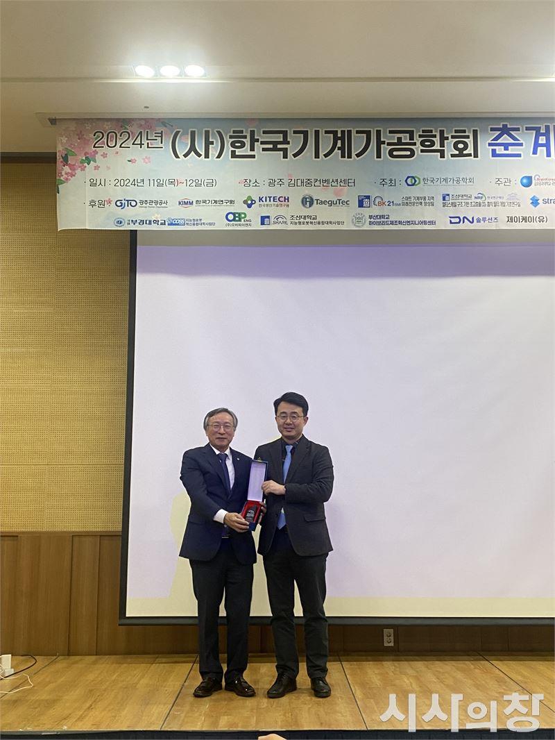 광주테크노파크는 “김영집 원장이 지난 4월 11일부터 12일까지 광주 김대중컨벤션센터에서 열리는 한국기계가공학회(회장 박준영) 춘계학술대회 기조강연에서 ‘글로벌 경쟁력의 근원으로써의 기업가정신’에 대해 발표하고 감사패를 받았다”고 15일 밝혔다.