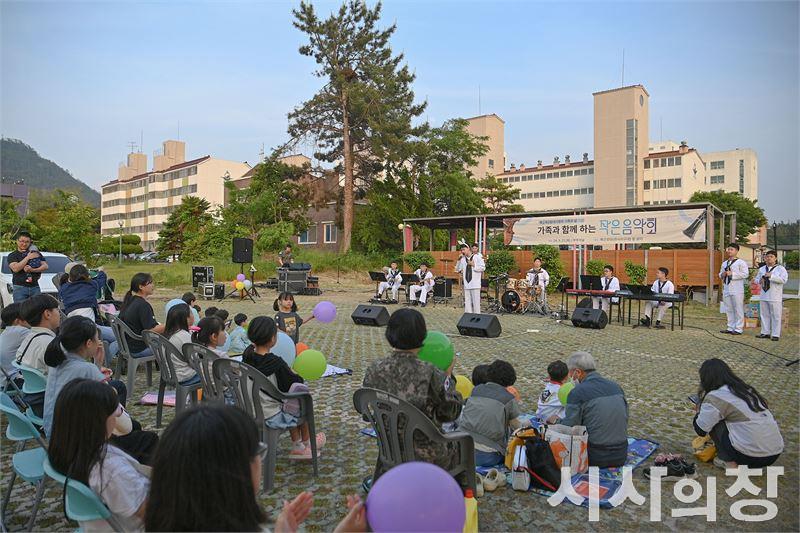 [시사의창=송상교기자] 해군 제3함대사령부(사령관 소장 김경률) 군악대가 “지난 21일 저녁 부부의 날을 맞아 부대 관사 지역에서 ‘찾아가는 작은 음악회’를 개최했다”고 22일 밝혔다.