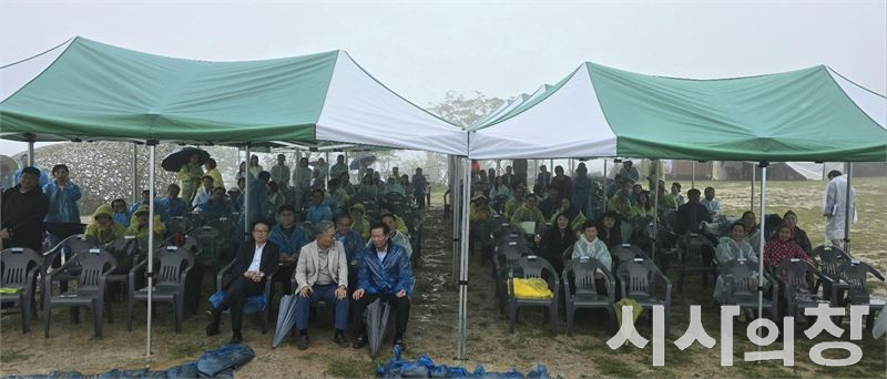 비바람 속에 감악산 산상에서 천막과 우의를 입고 진행한 개막식 모습