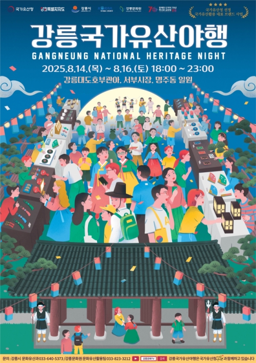 [시사의 창=정창교 기자] 강릉의 여름밤이 국가유산과 함께 빛나는 축제로 물든다. 올해로 열세 번째를 맞는 2025 강릉국가유산야행이 오는 14일(목)부터 16일(토)까지 3일간 강릉대도호부관아, 서부시장, 명주동 일원에서 펼쳐진다.