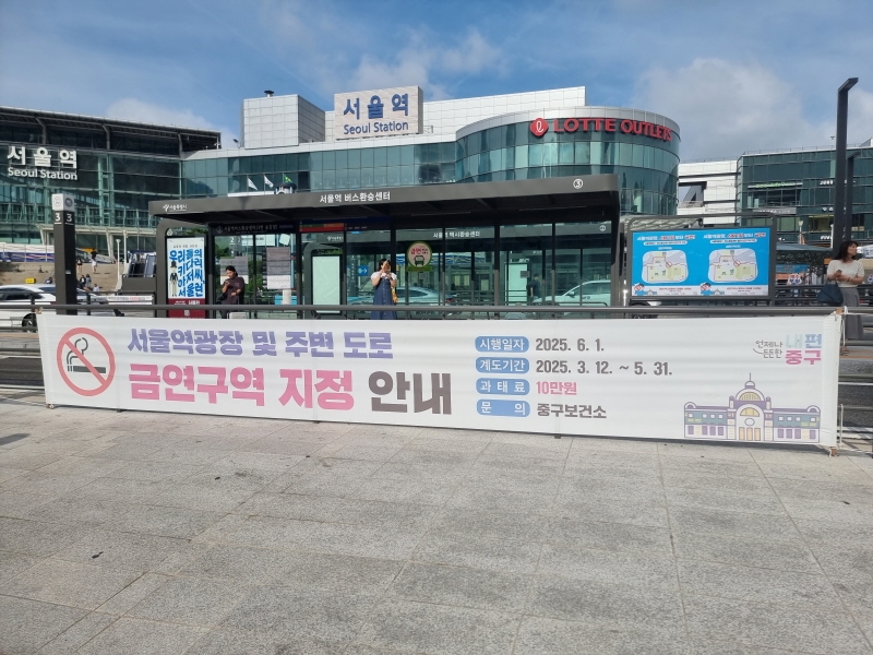서울역광장은 하루 유동인구가 수십만 명에 이르는 서울의 대표 관문이다. 특히 외국인 관광객과 환승객이 많이 오가는 이곳은 버스 환승센터, 택시 승강장이 밀집한 교통의 중심지이기도 하다. 이 때문에 서울시는 지난 1일부터 서울역광장 전역, 축구장 8개 넓이에 해당하는 약 5만 6800㎡를 금연구역으로 지정했다. 지하철 1번, 3번 출구 인근에 흡연 부스 두 곳을 설치하고, 그 외 구역에서 흡연 시 과태료 10만원을 부과하기로 했다. 중구와 용산구는 사전 계도기간을 두고 안내 문구를 수십 개 설치하며 시민들에게 새 제도를 알렸다.