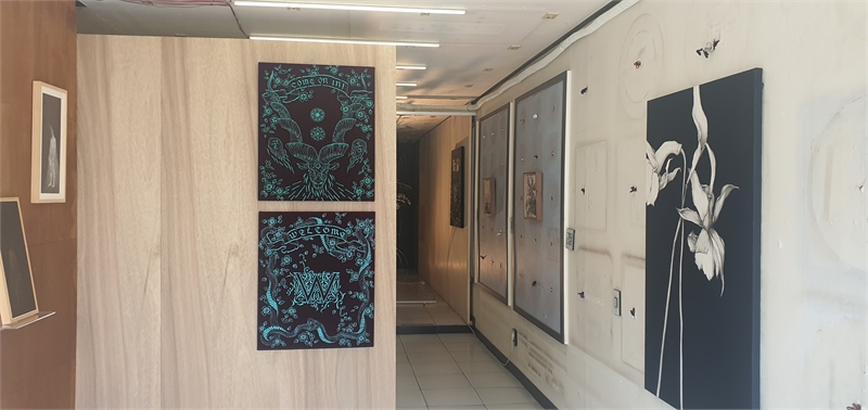 강수연의 ”다시…. 소멸적 풍경“은 버려지는 꽃들을 소생시키는 설치 작업으로 삶과 죽음을 연결하고 인공의 색을 입힌 꽃잎은 시듦 안에서 퇴폐적 아름다움을 보여 준다. 이인선은 혼돈과 질서. 삶과 죽음. 매혹과 혐오가 짝을 이루는 세계를 텍스트와 이미지로 표현한다. 그는 사양산업인 기계 자수를 화려한 도상과 색으로 되살려 인간의 욕망과 부조리에 관해 이야기한다. 해골과 꽃을 조합한 이미지들은 죽음을 유쾌한 조롱으로 비틀며 소멸하는 “카르페 디엠( Carpe Diem, 현재를 즐겨라.)”을 외친다. 조상근은 흑백의 강렬한 대비로 소멸하는 꽃잎의 순간을 응시하게 한다. 그에게 꽃은 인간의 삶과 죽음의 순환과 존재의 흔적을 나타내는 상징이 된다. 한지민은 일상을 신화와 주술의 세곌 끌어들이며 환영과 실재, 삶과 죽음, 영원과 찰나를 잇는다. 일상의 주변화된, 혹은 사라지는 존재와 풍경은 이러한 신화의 세계 속에서 초월적인 생명과 아름다움을 부여받는다.