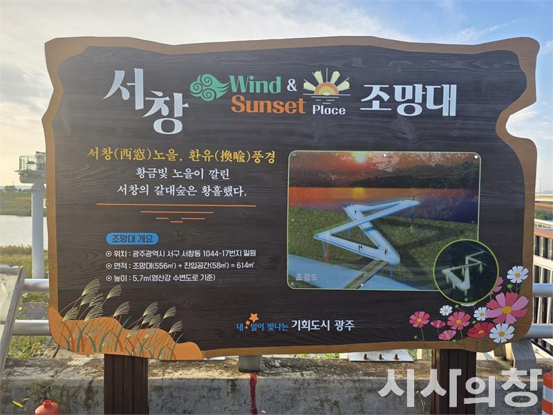 광주광역시는 10월 1일 오후 5시 20분, 서구 서창동 영산강변에 ‘서창 감성조망대’를 개장하고 시민과 관광객에게 공식 개방했다. ‘서창 감성조망대’ 안내판(사진=송상교기자)