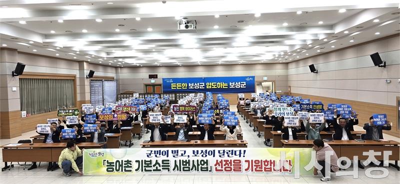 보성군은 농림축산식품부가 주관하는 ‘농어촌 기본소득 시범 사업’ 공모에 대응하기 위해 전 행정력을 집중하고 있다고 밝혔다.‘농어촌 기본소득 시범 사업’은 인구 감소와 고령화로 활력을 잃어가는 농어촌 지역에 기본소득을 도입해 생활 안정과 지역경제 활성화, 공동체 회복을 동시에 도모하는 국가 단위 시범 정책이다. 사진은 ‘「농어촌 기본소득 시범사업」 선정을 기원합니다’퍼포먼스를 하고 있다.[시사의창 = 송상교 기자]
