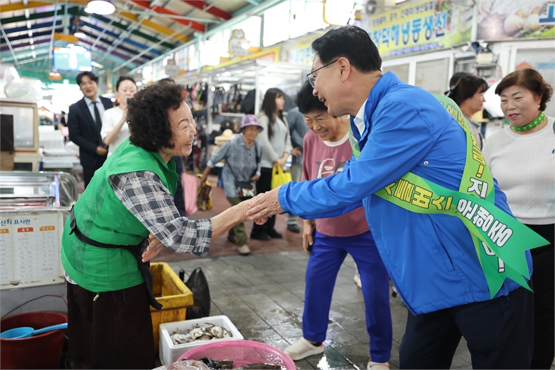 [시사의창=최진수기자] 심덕섭 고창군수가 추석 명절을 앞둔 2일, 고창전통시장을 찾았다. 그는 시장 곳곳을 돌며 직접 제수용품과 명절 선물을 구입하고 상인들의 손을 잡았다. 단순한 의례성 방문이 아니었다. 시장의 냄새와 소리, 그리고 상인들의 굳은 손을 통해 군수가 확인한 것은 명절 분위기를 넘어선 지역 경제의 심장이었다.