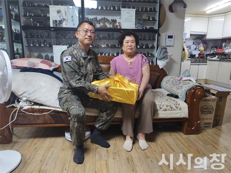 해군군수사령부 오민석 주임원사가 10월 2일(목) 추석 명절을 앞두고 창원시 진해구에 거주하고 있는 조손가정을 방문하여 위문품과 위문금을 전달하고 있다.해군군수사령부는 지역 소외계층 위문방문, 사회복지시설 점검 등 다양한 사회적 봉사활동을 통해 지역 사회와 함께하는 부대상 확립에 노력하고 있다.[시사의창 = 송상교 기자]