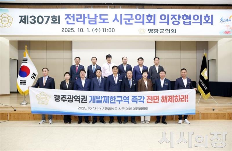 전라남도 시군 의회 의장협의회는 지난 10월 1일 영광군의회에서 개최된 제307회 정례회의에서“광주광역권 개발제한구역 전면 해제 촉구 건의안”을 만장일치로 채택했다. [시사의창 = 송상교 기자]