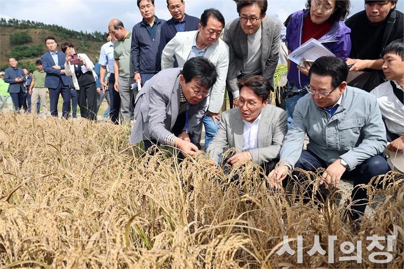 장흥군은 김민석 국무총리가 7일 장흥군 안양면 해창리 일원을 방문해 ‘벼 깨씨무늬병’ 피해 현장을 점검했다고 전했다.이번 현장 방문은 최근 빠르게 확산하고 있는 벼 깨씨무늬병의 피해 상황을 살피고, 정부 차원의 지원책을 마련하기 위해 추진됐다.[시사의창=송상교 기자]