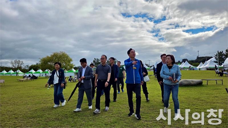 나주시가 ‘2025 나주영산강축제’ 개막을 하루 앞두고 현장을 최종 점검하며 시민과 관광객 맞이에 만반의 준비를 마쳤다.7일 나주시에 따르면 윤병태 시장은 영산강정원 축제 현장을 찾아 부서장들과 함께 교통, 안전, 운영 전반을 꼼꼼히 살피며 축제 준비 상황을 최종 점검했다. 사진은 윤병태 시장이 부서장들과 함께 축제장 곳곳의 안전과 운영 등 전반적인 현황을 꼼꼼히 점검했다.[시사의창=송상교 기자]