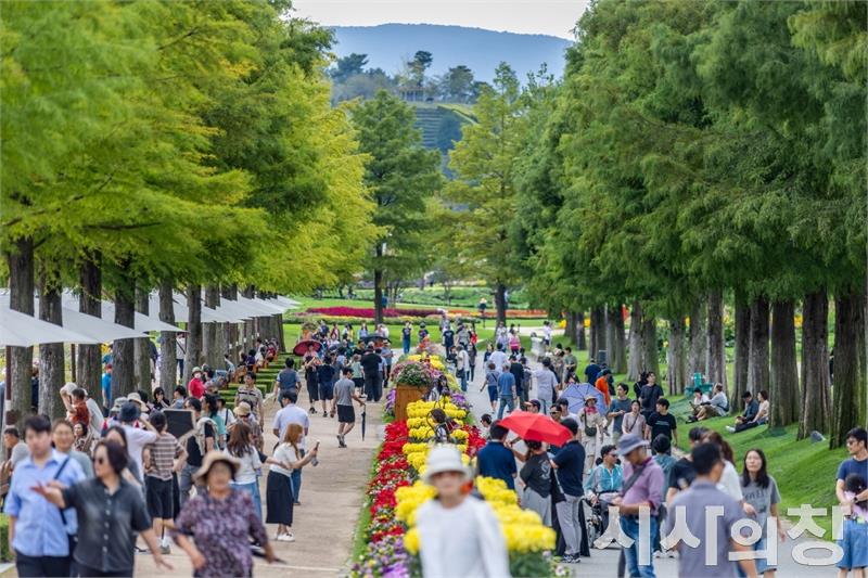 민족 최대 명절 추석을 맞아 순천만국가정원이 다채로운 프로그램과 함께 연휴 내내 관람객들로 북적였다. 올해 추석 연휴에는 하루 평균 5만 명이 넘는 이들이 정원을 찾아 가족·연인·친구와 함께 웃음과 여유를 즐기며 활기찬 명절의 정취를 더했다. 사진은 순천만국가정원 낙우송길 관람객들