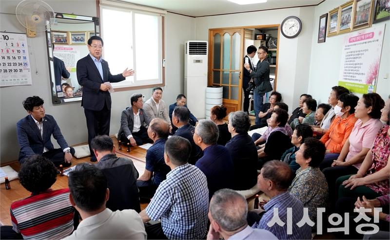 전라남도 김영록 도지사는 9일 ‘청정전남 으뜸마을’인 광양 교촌마을을 찾아 주민들과 소통하며 현장 민심을 살폈다.사진은 김영록 전라남도지사가 추석 연휴 마지막 날인 9일 청정전남 으뜸마을 만들기 사업을 추진중인 광양시 광양읍 교촌마을을 방문, 주민들과 현장 좌담회를 갖고 건의 및 애로사항을 청취하고 있다.[시사의창 = 송상교 기자]