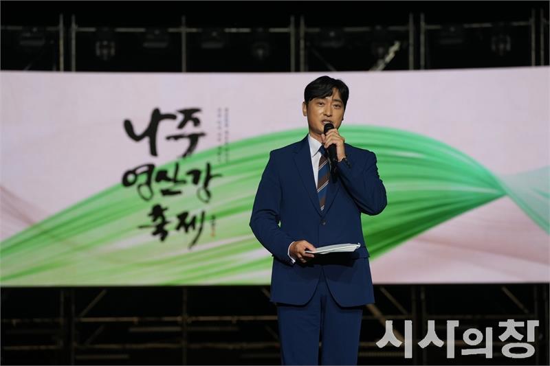 ‘2025 나주영산강축제’ 개막 이튿날은 문화와 예술로 가득 채운 무대들이 펼쳐지며 축제의 열기를 이어갔다.사진은 배우 원기준이 ‘뮤지컬 빅쇼’ 특별 진행자로 나서 재치있는 진행으로 축제장 방문객들에게 추억을 선물했다.[시사의창 = 송상교 기자]