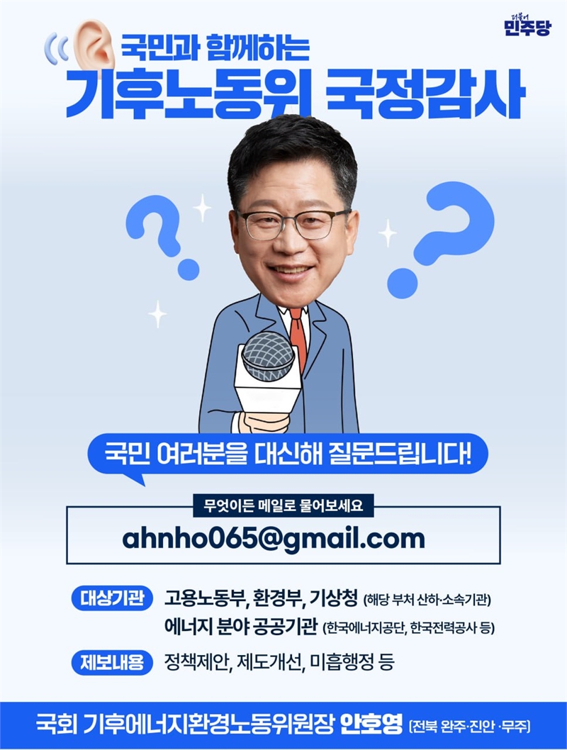 #안호영 #기후에너지환경노동위원회 #국정감사 #전북 #ESG교육 #에너지전환 #마을에너지조합 #수소경제 #AI정책 #현장청취