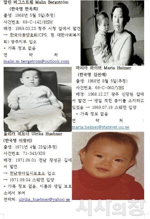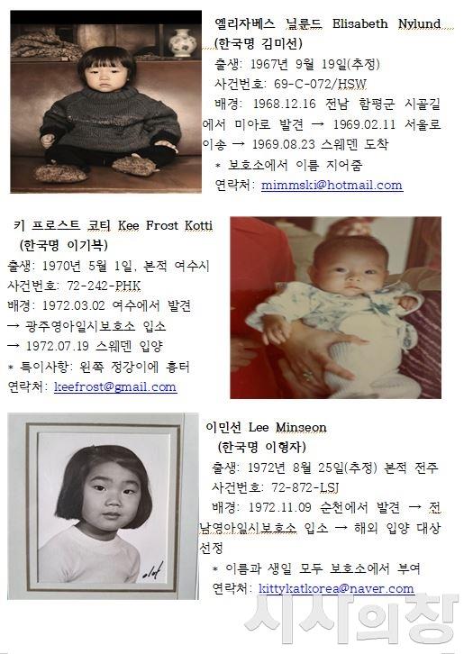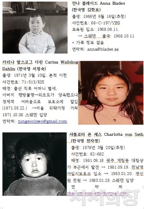 광주광역시가 스웨덴에 거주하는 입양동포들의 가족 찾기를 돕기 위해 따뜻한 손을 내밀었다.사진은 입양당시 사진과 내용.[시사의창=송상교기자]