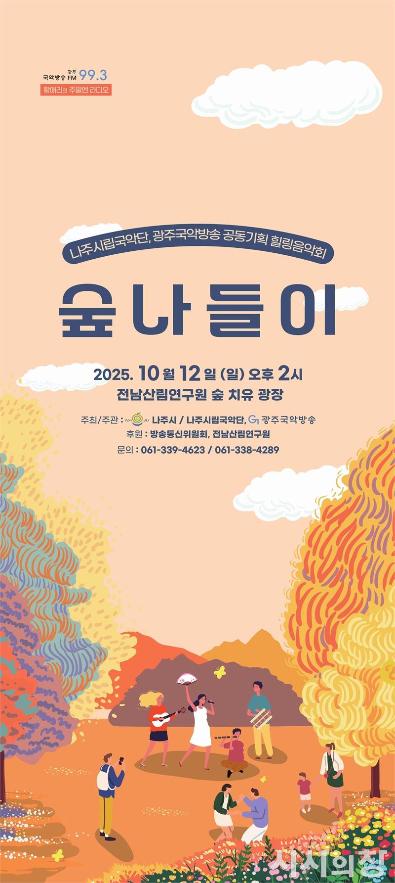 전라남도산림연구원은 가을철을 맞아 오는 12일 ‘숲나들이’ 숲치유 힐링음악회를 개최한다고 밝혔다.이번 음악회는 나주시립국악단 등과 공동 기획했으며, 특히 프랑스 공연팀 ‘삼인동락(Three Friends in Harmony)’이 참여해 국제적인 문화교류의 장을 마련한다. [시사의창=송상교기자]
