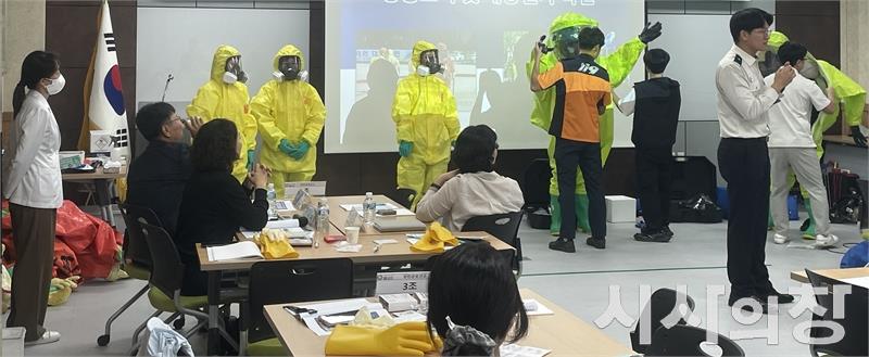 훈련은 생물테러 대응 이론 교육, 개인보호복(레벨 A, C) 착·탈의 실습, 다중탐지키트 사용법, 현장 활동계획 수립 및 위험구역 설정 등으로 진행됐으며, 전남소방본부 소방감사담당관 김태문 소방위가 강사로 참여해 현장 경험에 기반한 실질적인 교육을 제공했다.
