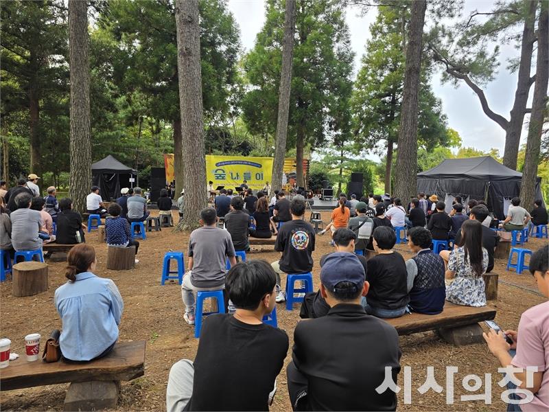 전라남도산림연구원은 12일 오후 2시, 나주시 소재 전라남도산림연구원 숲치유광장에서 ‘숲나들이 숲치유 힐링음악회’를 개최했다.이번 행사는 국악과 세계음악이 어우러지는 다채로운 무대로 꾸며져 시민들에게 자연 속에서의 진정한 힐링을 선사했다.(사진=송상교 기자)