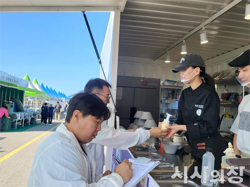 남도국제미식산업박람회 식음료안전센터에는 식품위생감시원 163명이 투입돼, 행사장 내 식음료시설 37개소(식당 24, 카페 및 스낵 6, 푸드트럭 5, 편의점 1)를 대상으로 매일 위생 점검을 실시하고 있다.