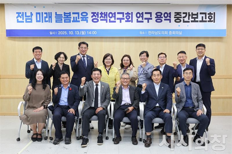 전라남도 의원연구단체 전남 미래형 늘봄교육 정책연구회(대표의원 정철)는 10월 13일 전라남도의회 중회의실에서 「전남 미래형 늘봄교육 모델개발과 학교 내외 안전사고 예방 방안 연구」 정책연구용역 중간보고회를 개최했다. 이번 보고회는 연구용역 추진 경과와 그동안의 주요 성과를 공유하고, 향후 정책 추진 방향을 논의하기 위해 마련됐다.[시사의창=송상교기자]