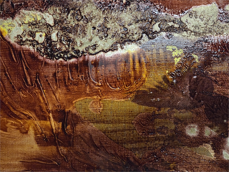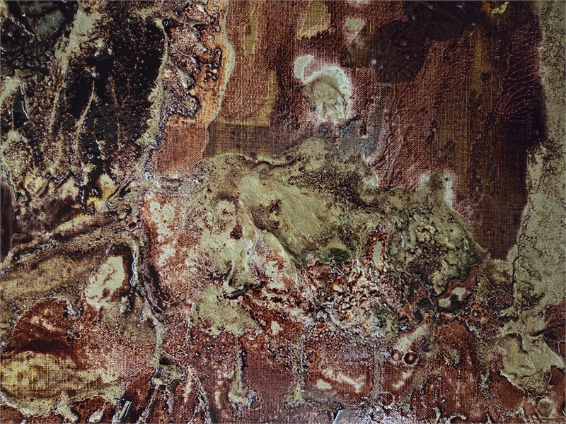 AI의 학습은 빠르고 정확하지만, 그것은 단지 정보의 축적일 뿐이다.반면 인간의 배움은 느리고 불완전하며, 그 느림 속에서 언어는 무의식에 배어들어 신앙적 체험으로 변한다. 손용수 작가는 이 느림의 과정을 포비돈의 낙하와 증발, 얼룩의 번짐으로 시각화한다.