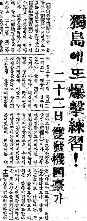 1차 독도 폭격 사건 당시 울릉도에 신문기자들이 시찰차 체류하고 있었기에 독도 폭격 사건을 접한 기자들이 즉시 기사를 작성하였다고 한다. 당시에 통신 사정이 좋지 않아 사건 발생 3일 만인 6월 11일에 처음으로 폭격 사건과 관련한 조선일보의 단독 기사가 나왔다.