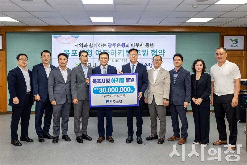 광주은행은 지난 13일 목포시청에서 열린 협약식에서 목포시청 여자하키팀 공식 후원 협약을 체결하고, 2026년부터 2028년까지 3년간 총 9천만 원(매년 3천만 원)을 지원하기로 약속했다.