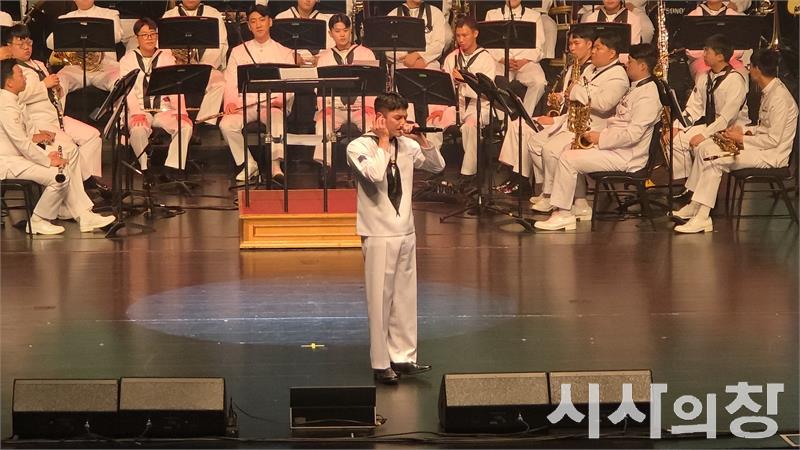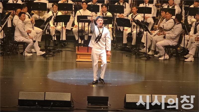 [시사의창=송상교 기자] 15일 오후 목포시민문화체육센터 대공연장에서 열린 ‘2025 대한민국해군 호국음악회’ 무대에 아이돌 그룹 NCT의 이태용 병장(해군홍보단)이 등장하자 객석은 환호로 가득 찼다.