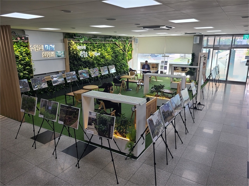 권선구청에서 새빛수원 손바닥정원 사진전시회가 열리고 있다.(수원시 제공)