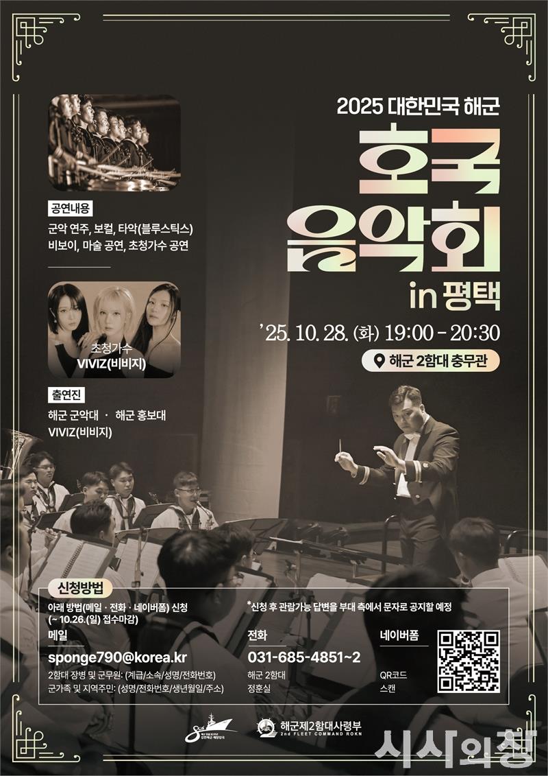 해군 제2함대사령부는 오는 10월 28일 저녁 7시, 부대 내 충무관에서「2025 대한민국해군 평택 호국음악회」를 개최한다.[시사의창=송상교기자]
