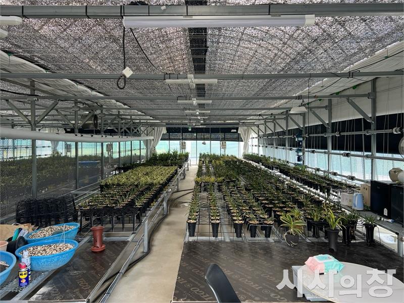 전라남도 화순군(군수 구복규)이 역대 최초로 한국춘란(春蘭)의 대중국 수출에 나서 대한민국 화훼 산업의 새로운 이정표를 세울 것으로 전망된다고 16일 밝혔다.이번 수출은 단순한 품종 판매를 넘어 한·중 간 화훼 교류 확대와 한국 전통 난문화의 세계화를 기대하며, 향후 2차ˑ3차 수출을 통해 총 1억 원의 매출을 달성할 계획이다. 사진은 수출용 한국춘란을 재배 중인 온실 내부 모습.[시사의창=송상교기자]