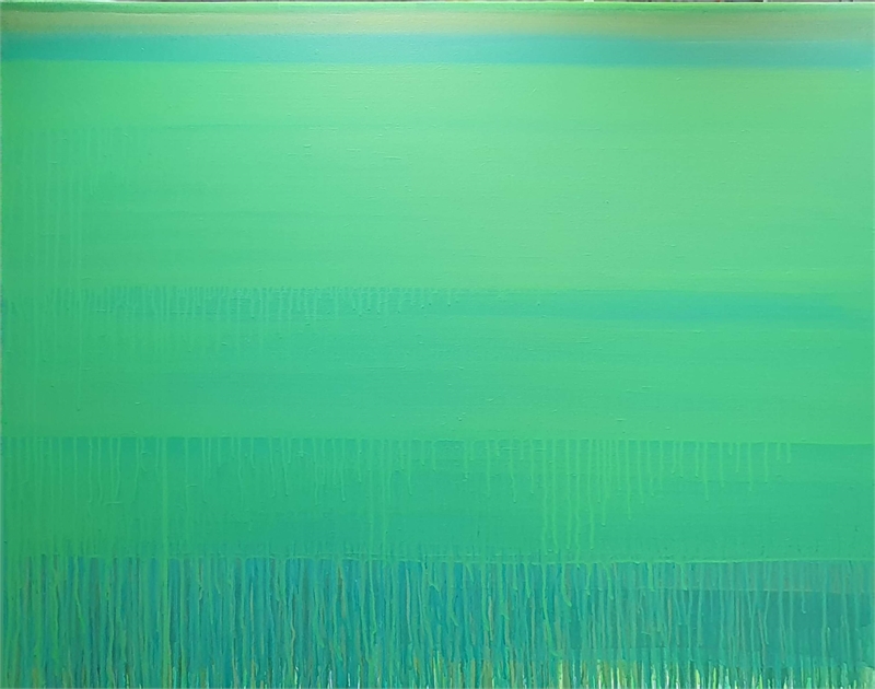 안내대에 앉아서 관람객이 뜸한 시간에는 내 그림을 망연히 쳐다본다. 내가 그린 그림이 아니라 다른 작가가 그린 그림이라 생각하며 작업을 객관화시켜 본다. 스스로 세계에 있다는 것은 다분히 주관적일 수밖에 없는, 그래서 착각으로 인해 공허한 목소리를 내는 향기 없는 작품이 될 수도 있기에 객관화는 중요한 자기 검증이다. 내 작업을 판단해볼 때 그림이라 하기에는 묘사되어 재현되는 것이 아니라서 나는 화가가 아니라고 단언하곤 한다. 작가라는 단어를 사용하는 것이 더 적합한 상황이 아닐까. 대상을 만들어내기 위해 스스로 컨트롤 하는 행위를 통해 스트레스를 받거나 조심하는 것이 아닌 물감으로 무작위로 칠을 하는 상황이고 시도 때도 없이 모든 작업의 행위가 이루어진다. 따라서 무심하게 이루어지는 시간의 누적이 작업의 핵심이라 할 수 있다. 그렇게 하여 테크닉을 탈피하고 감각만을 존재시키는 것, 그 계산되지 않는 감각으로 내면으로 들어가 자신의 마음의 문을 여는 그림이 되지 않을까.