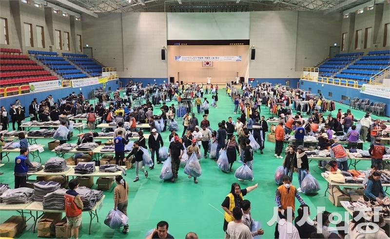 전라남도는 19일 진도군 실내체육관에서 이주노동자 500여 명을 대상으로 작업복 나눔 행사를 개최했다.[시사의창 = 송상교 기자]