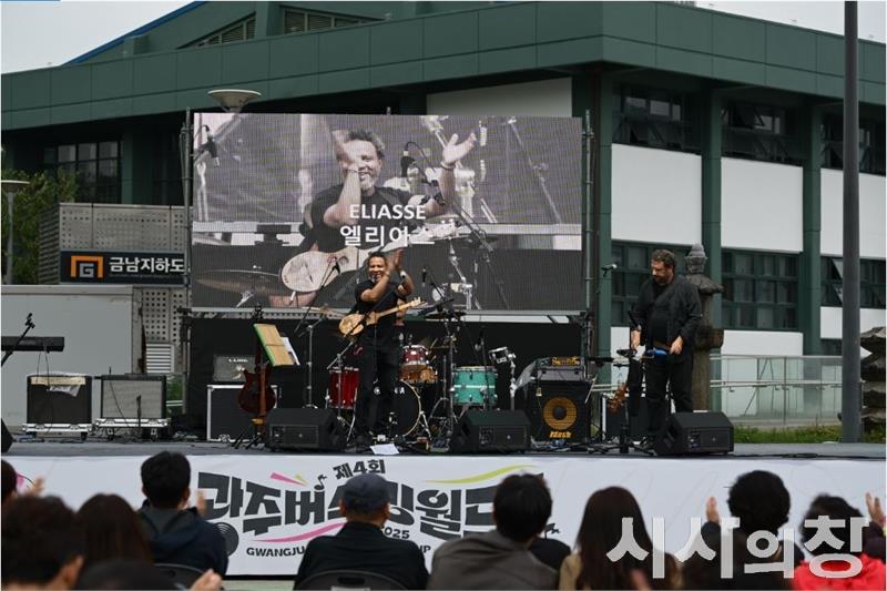 제4회 ‘광주 버스킹월드컵’이 지난 15일부터 19일까지 5·18민주광장과 국립아시아문화전당(ACC) 일대에서 열리며, 거리의 음악이 도시의 공기를 가득 메웠다. 올해 버스킹월드컵은 ‘거리의 리듬, 축제를 물들이다’를 주제로, 단순한 경연을 넘어 세계 음악 시장과 소통하는 글로벌 쇼케이스형 축제로 진화했다.사진은 코모로·프랑스 출신 밴드 ‘엘리아스’의 공연모습.[시사의창 = 송상교 기자]
