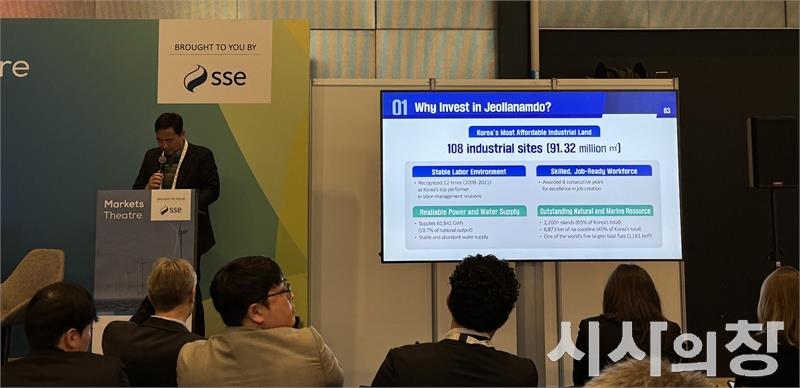 전라남도가 21일(현지시간) 미국 로스앤젤레스 한인상공회의소에서 전남도 투자설명회(IR)를 개최한다. 이번 설명회는 LA지역 한인 경제계와 현지 기업인, 투자자 등 150여 명이 참석한 가운데, 전남도의 투자환경과 스타트업 육성계획, 각종 기업 지원사업을 집중 홍보할 예정이다. 사진은 2025년 덴마크에서 전라남도 해상풍력 분야 투자유치설명회 모습.[시사의창 = 송상교 기자]